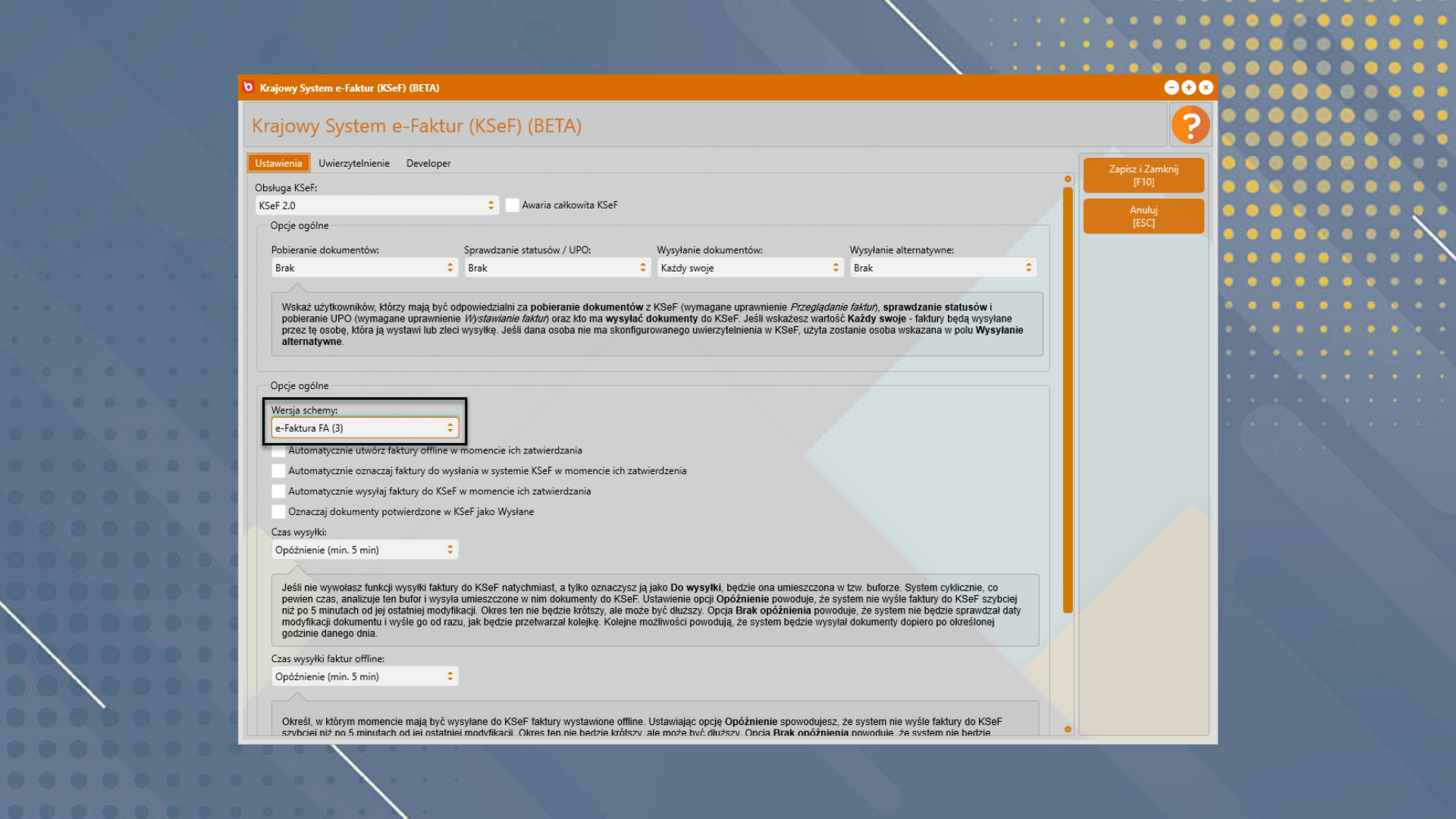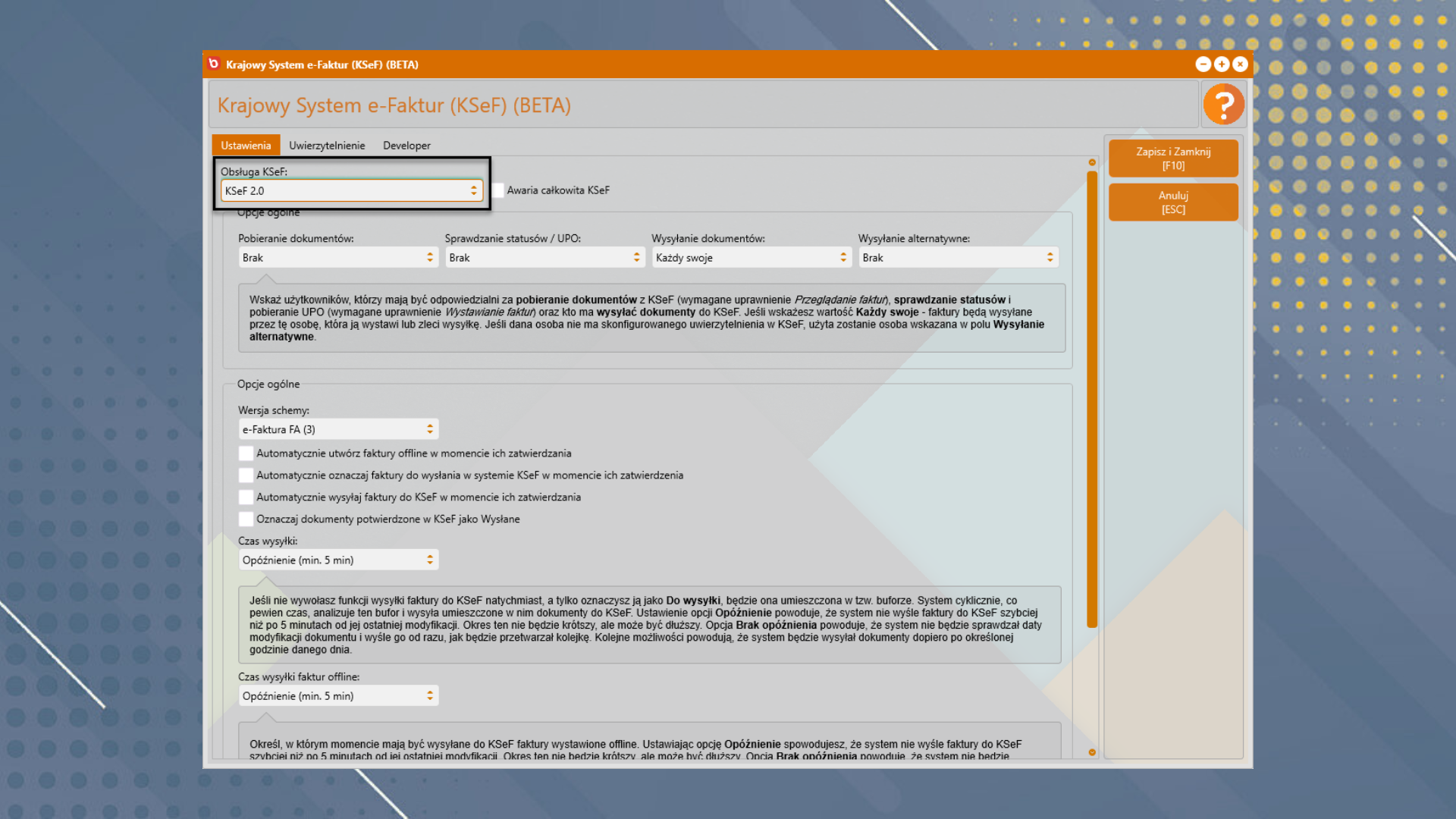 W polu Obsługa KSeF wybierz KSeF 2.0.
