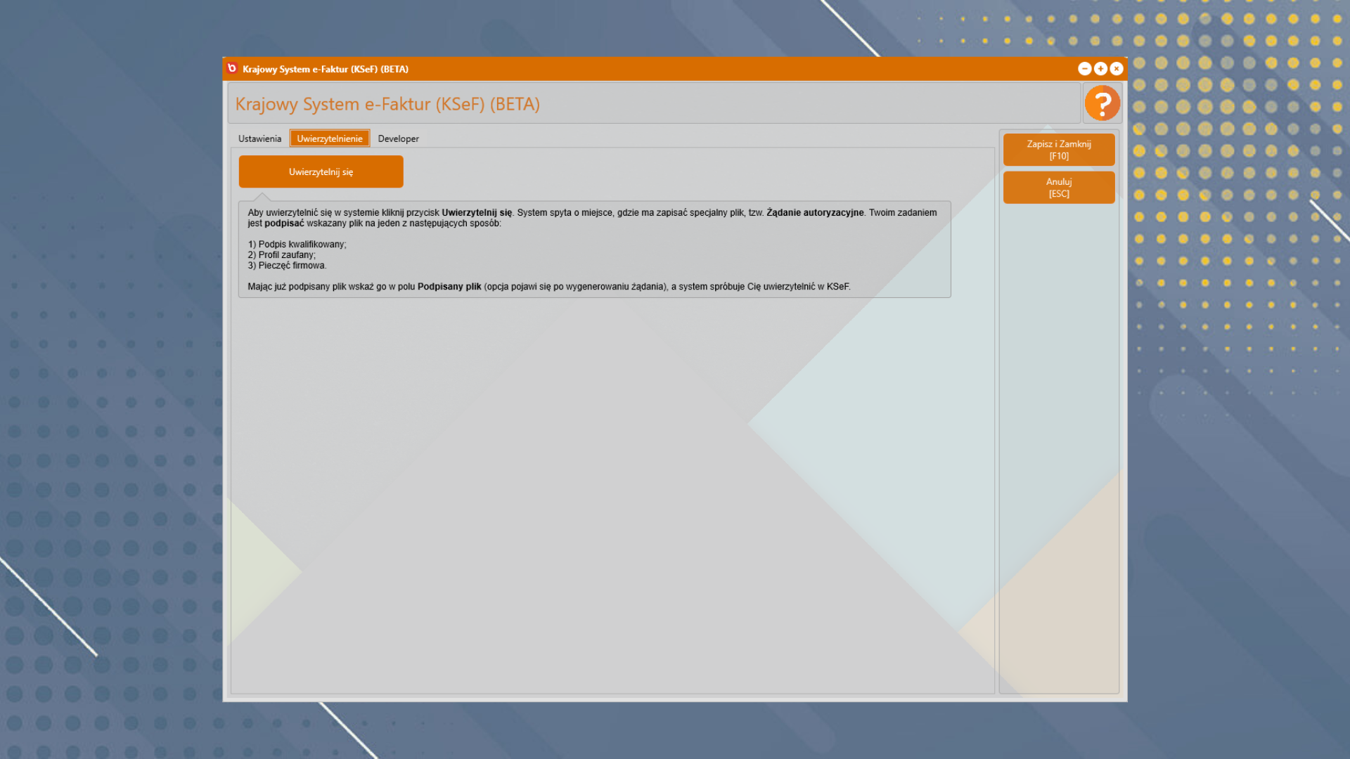 Aby móc wysyłać i pobierać dokumenty, konieczne jest uwierzytelnienie, czyli potwierdzenie tożsamości w systemie KSeF.
